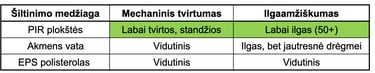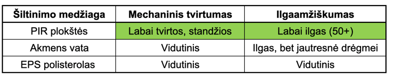 Išvada: PIR plokštės yra mechaniškai tvirčiausios ir ilgaamžiškiausios