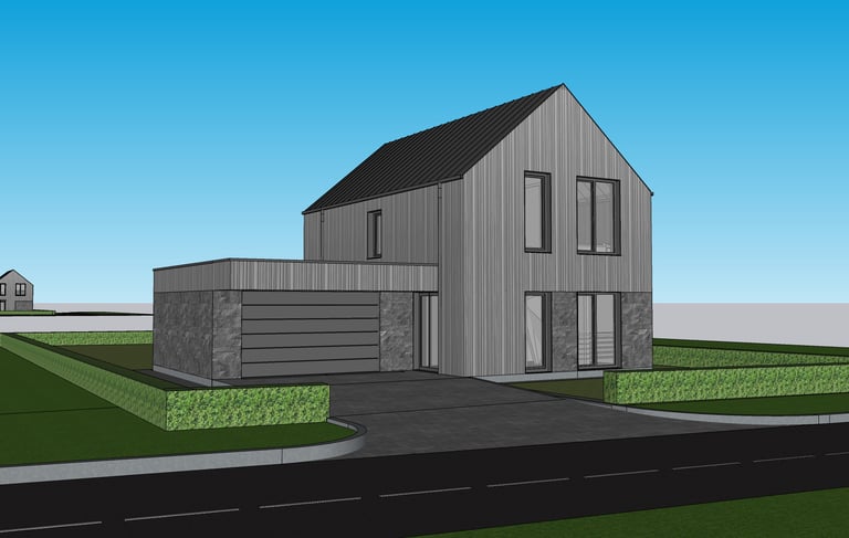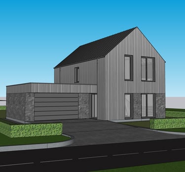 Papildomai: Erdvi terasa, 2 automobilių stoginė
