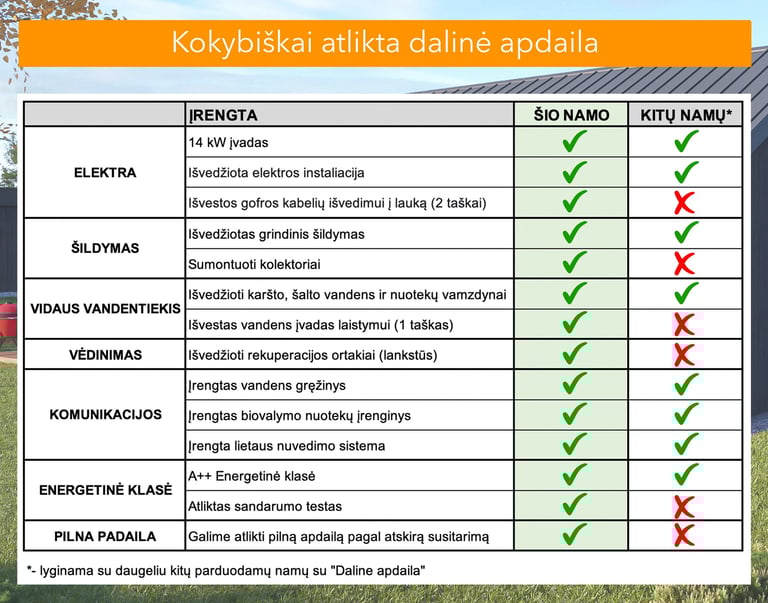 Vidaus apdaila: Dalinė. Galimas įrengimas “iki rakto”